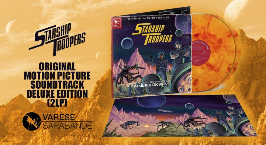 'VARÈSE SARABANDE VINYL CLUB EXCLUSIVE' annonce la sortie du score de Basil Poledouris pour STARSHIP TROOPERS